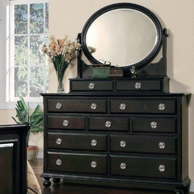 | MA6357DR Features: -Mirror has beveled glass.-Resin carvings. Includes: -Set includes dresser and mirror.-Dresser has nine dovetail drawers and includes jewelry case. Construction: -Solid hardwood and veneer construction. Color/Finish: -Cappuccino finish. Collection: -Marlon collection. Warranty: -Manufacturer provides 6 months limited warranty against product defects. ...Read
