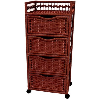 Oriental Furniture 38-Inch Rattan Style Natural Fiber 4 Drawer Chest with Swivel Casters, Mahogany