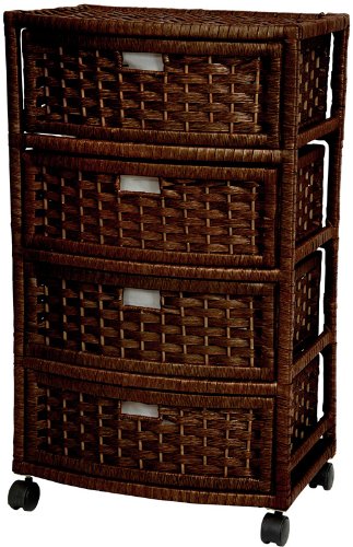 Oriental Furniture Elegant Attractive Low Price Most Affordable Popular, 29-Inch Tall Natural Plant Fiber 4 Drawer Simple Storage Chest on Wheels, Mocha Descriptions |