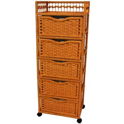 Oriental Furniture Inexpensive, Low Price High Quality Tall Nightstand, 46-Inch Natural Fiber Chest of Drawers on Wheels, Honey